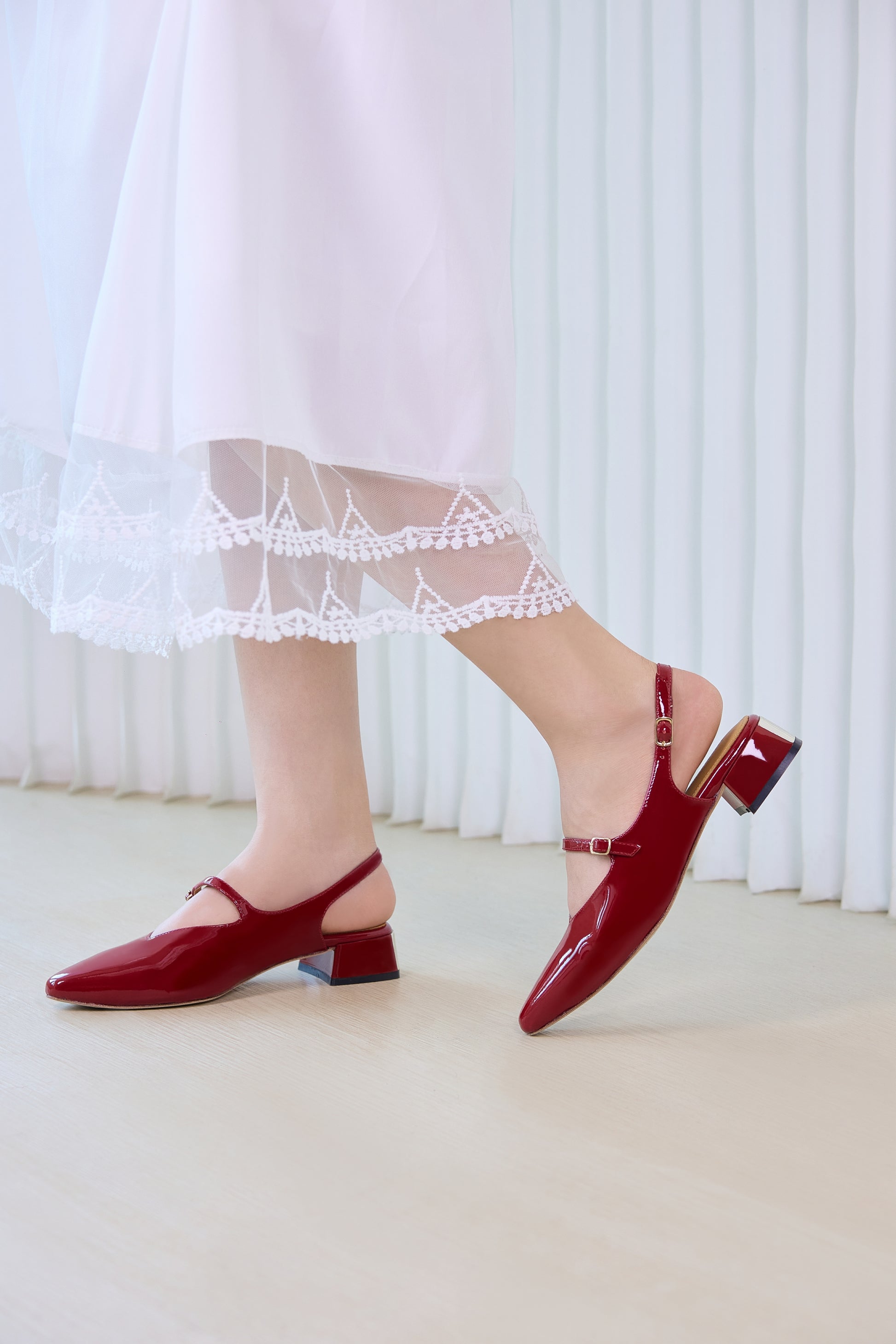 程よい高さのミドルヒールで安定感があり、歩きやすさにも配慮。