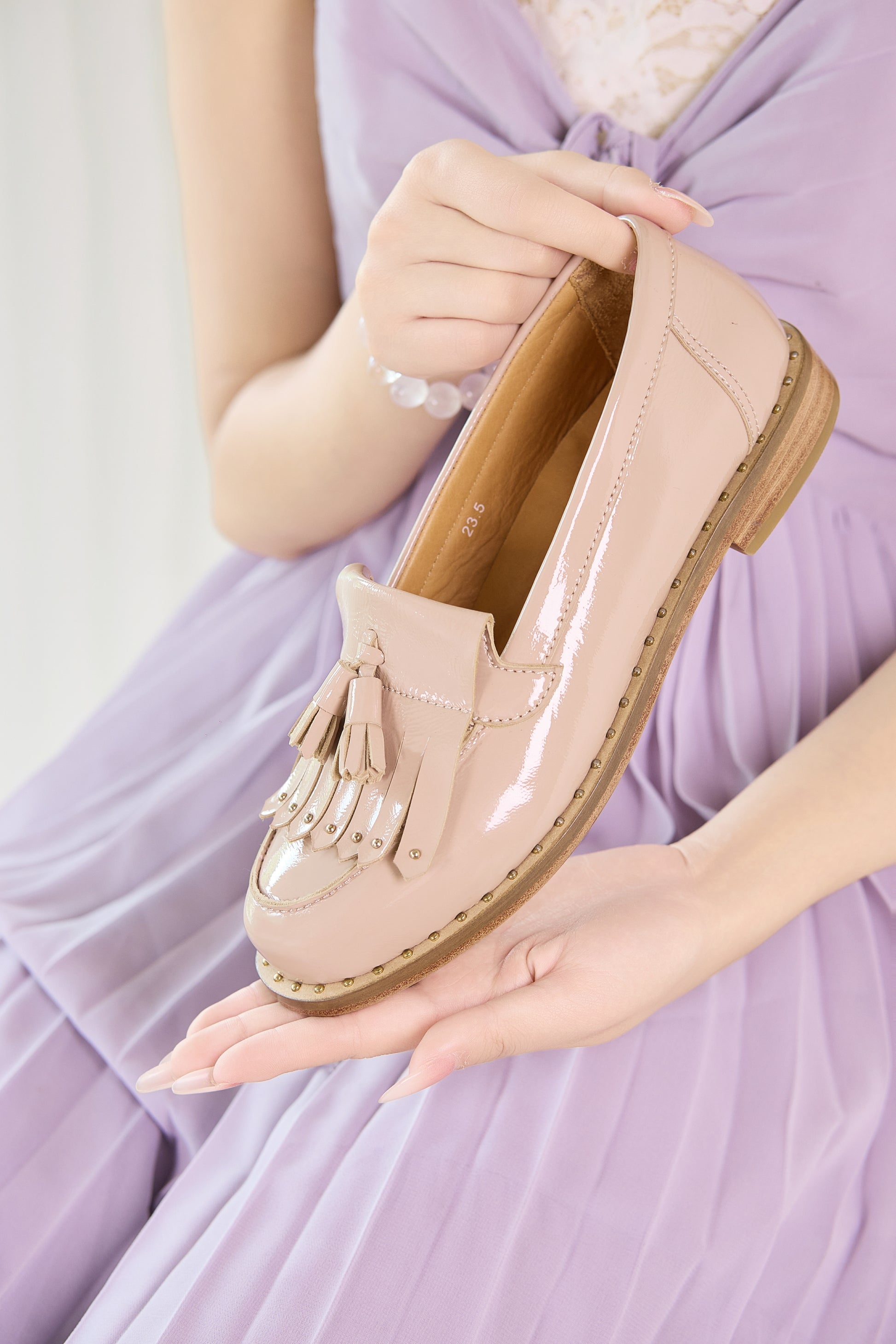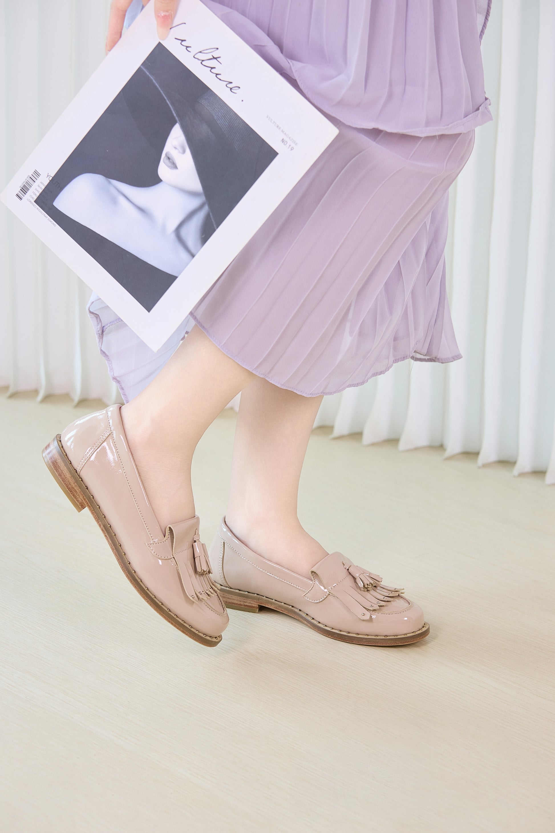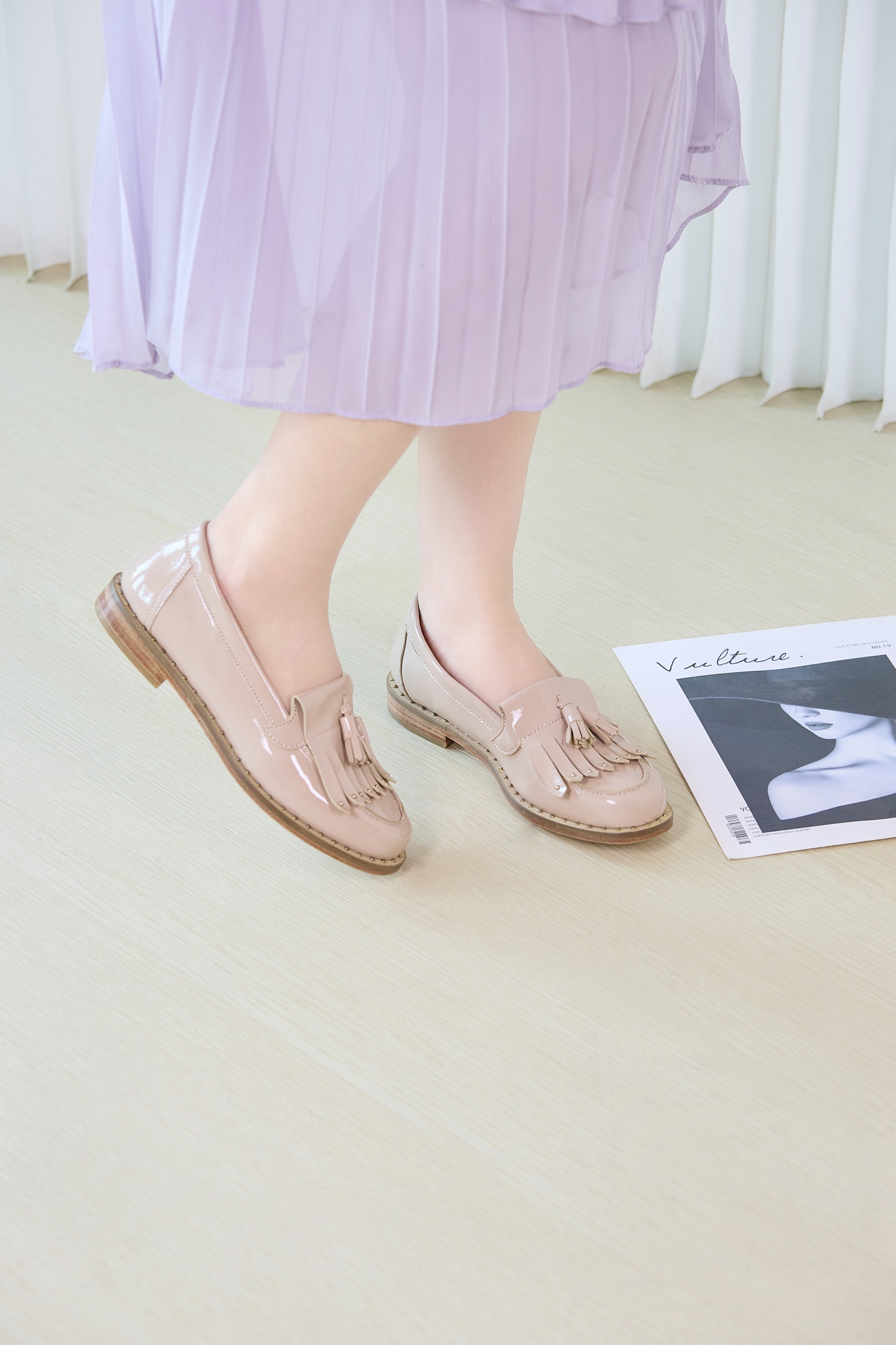 レディース フリンジ付き ローファー タッセル エナメル調 ローヒール きれいめ カジュアル 歩きやすい 大人 靴:SWL-08