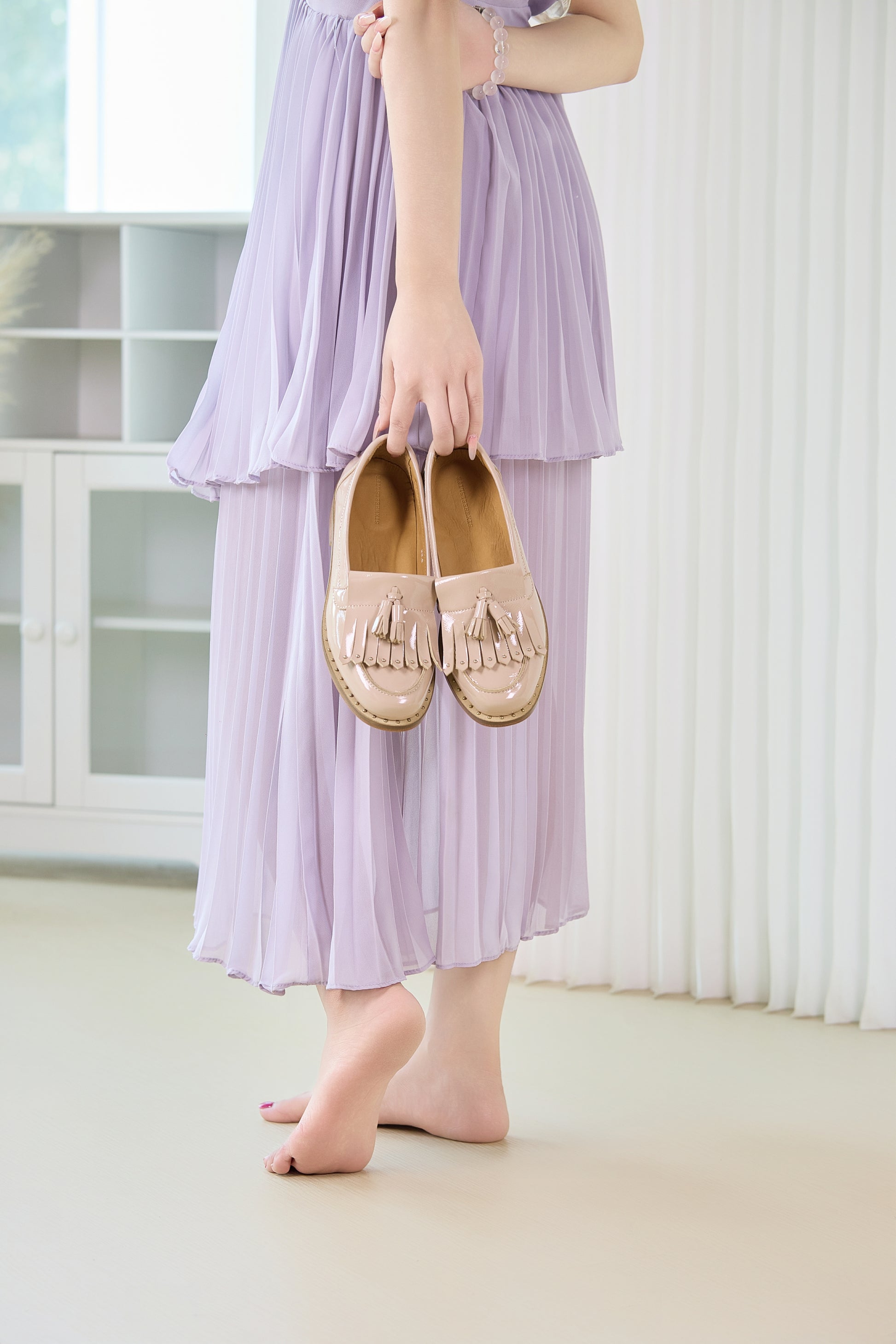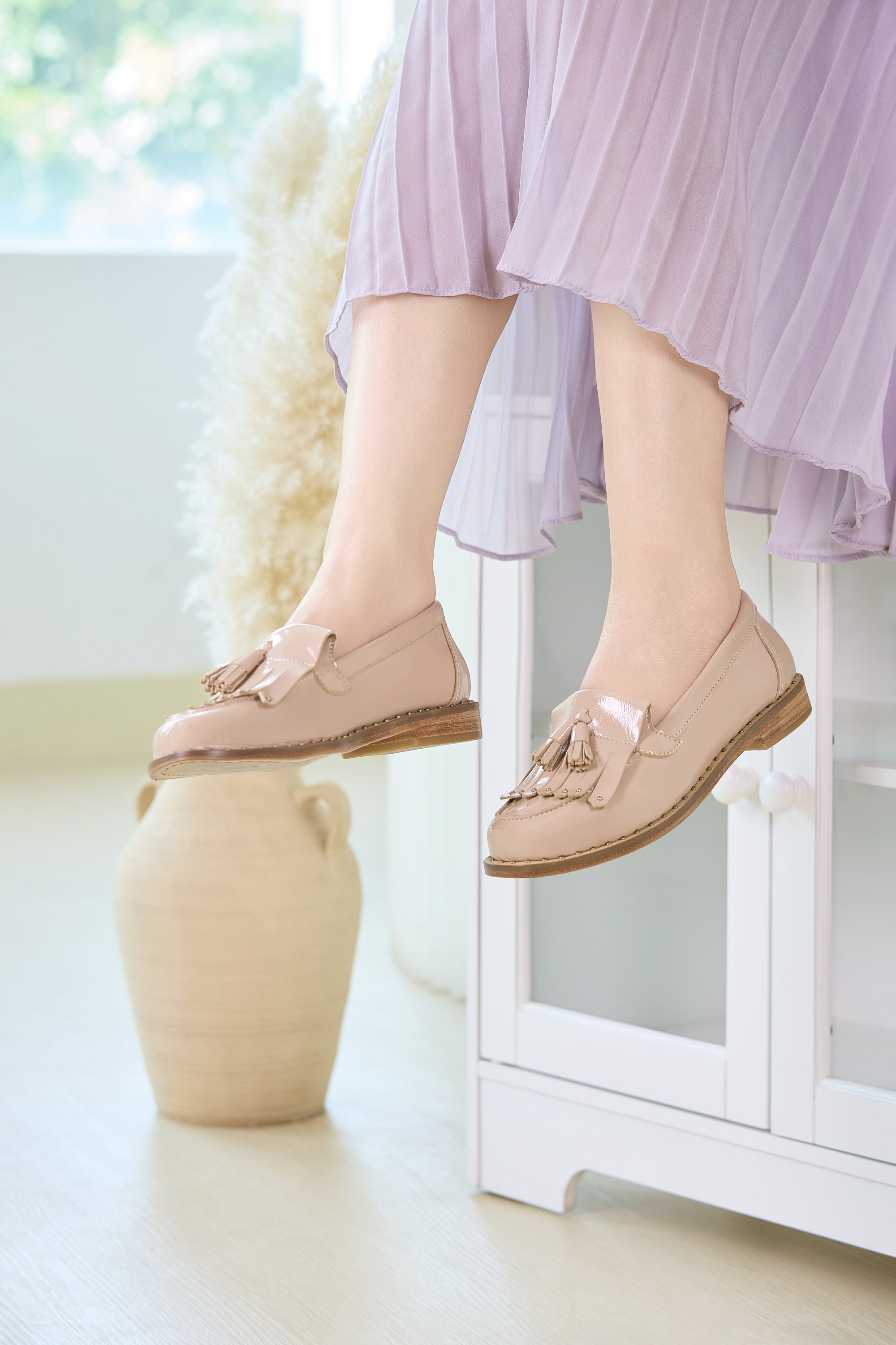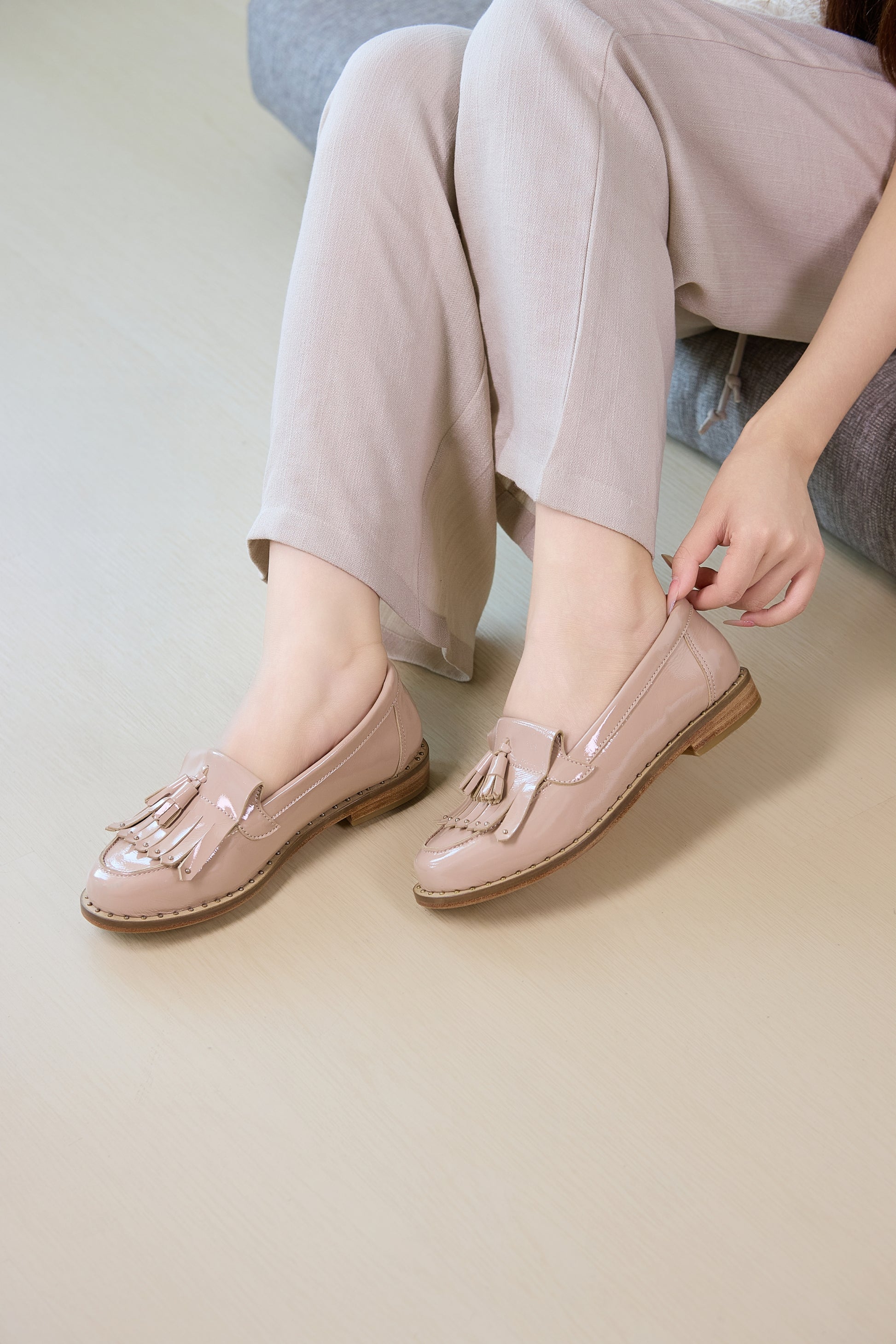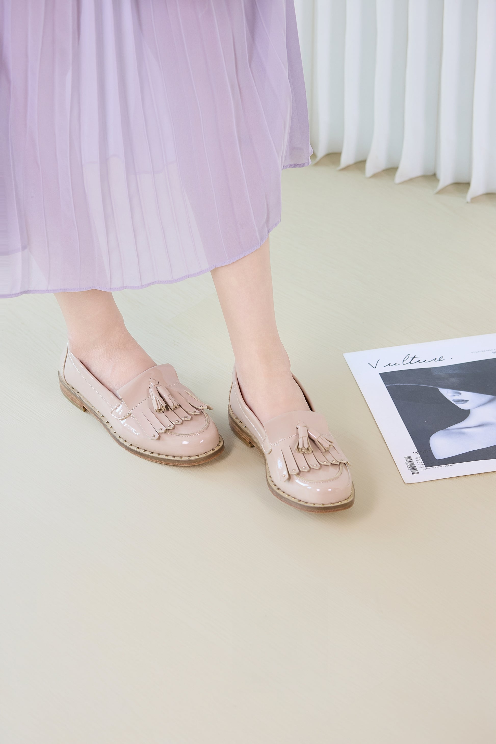 レディース フリンジ付き ローファー タッセル エナメル調 ローヒール きれいめ カジュアル 歩きやすい 大人 靴:SWL-08