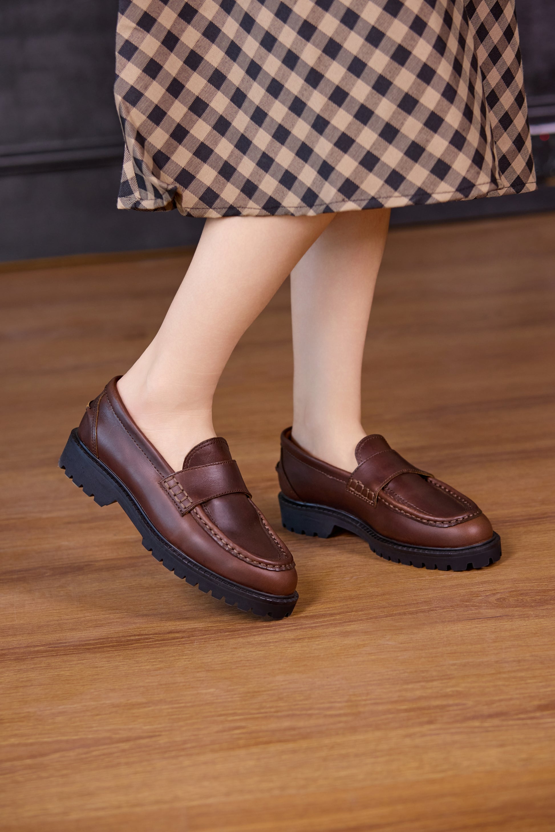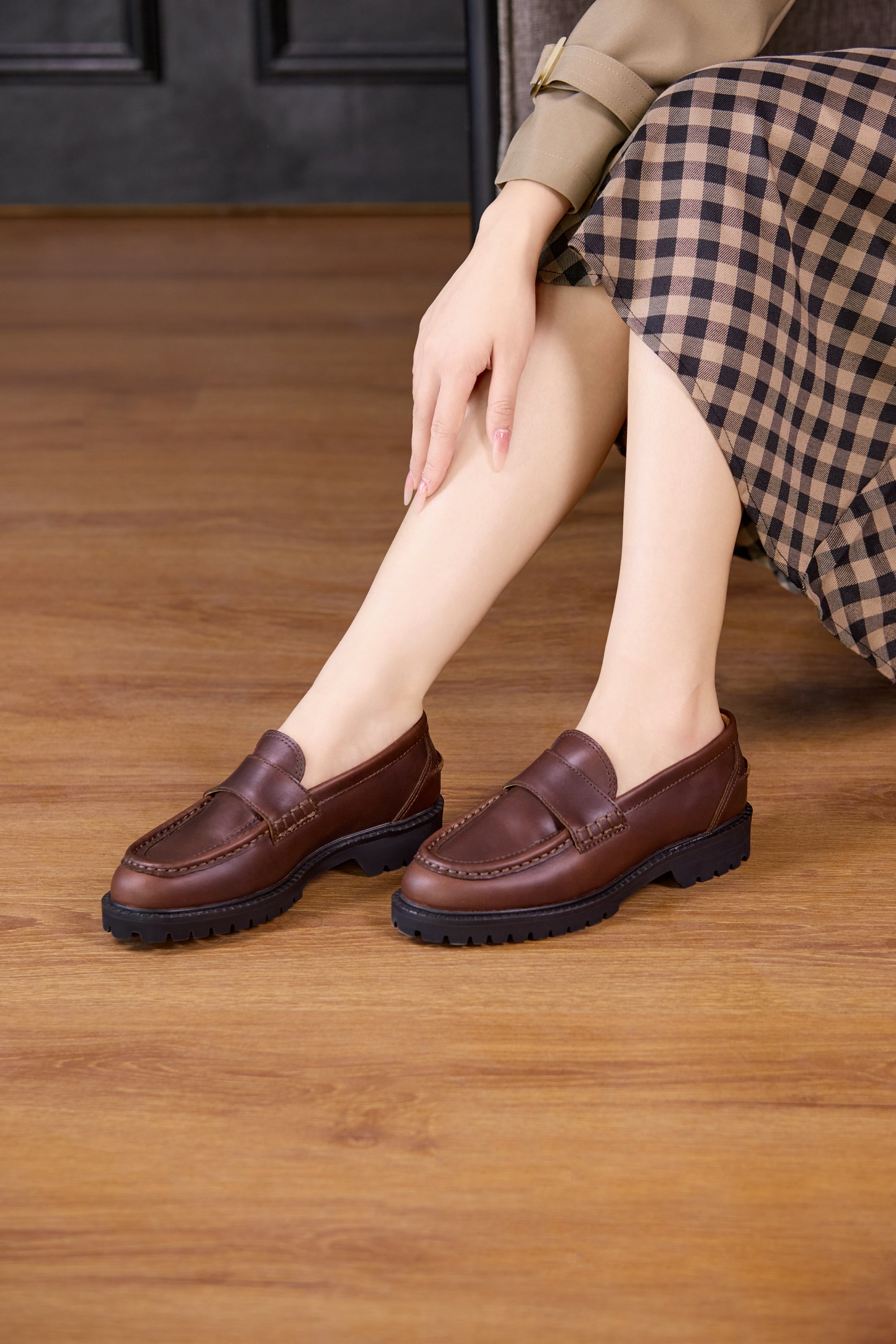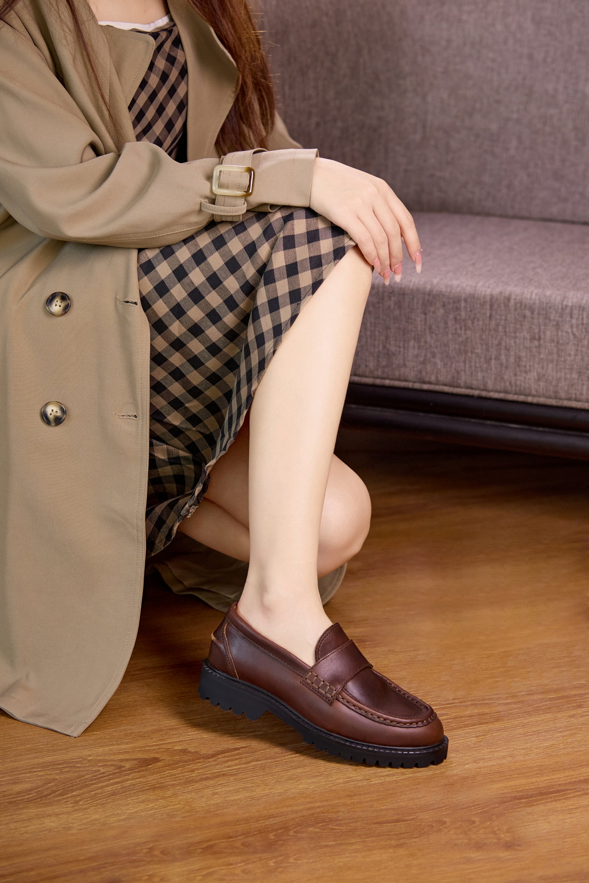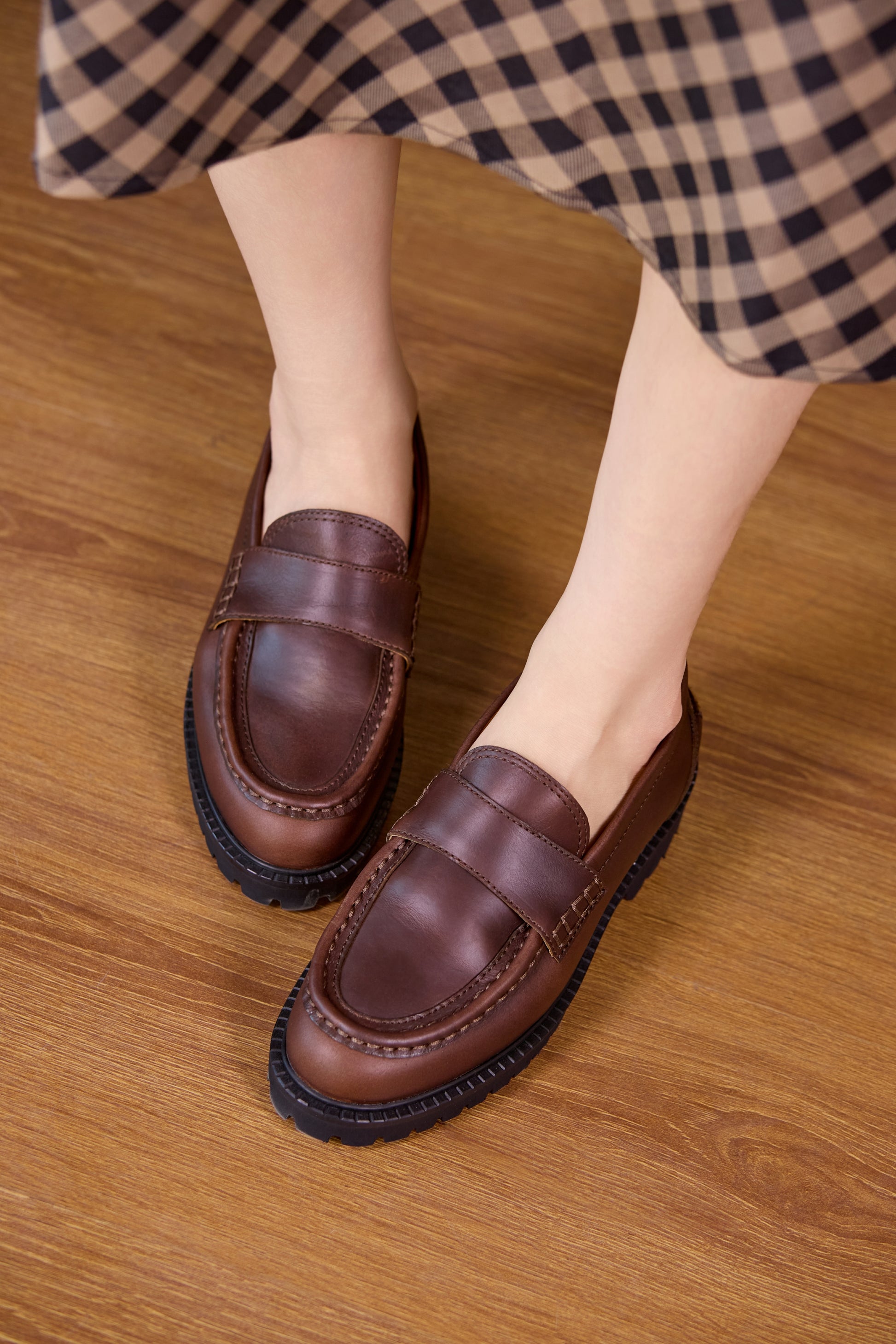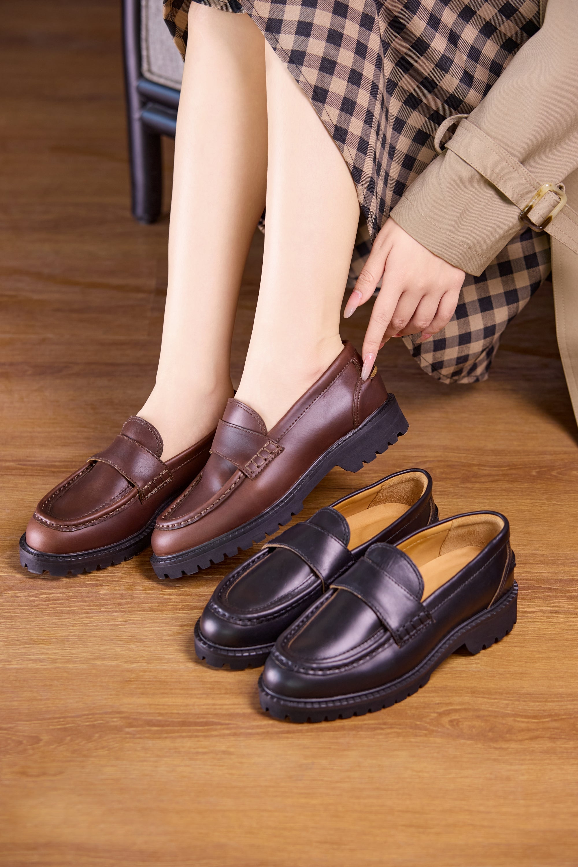 レディース 厚底 ローファー シンプル ボリュームソール カジュアル 歩きやすい きれいめ 大人 靴:SWL-10